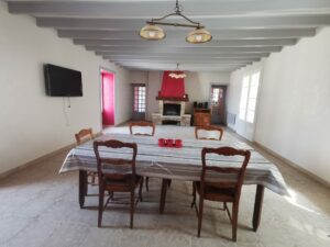 - Vie de plain-pied : Une cuisine dînatoire, une grande salle à manger avec insert (qui chauffe une grande partie de la maison), une véranda lumineuse, deux chambres, une salle d’eau, une arrière-cuisine et 2 espaces de stockage/ garages.